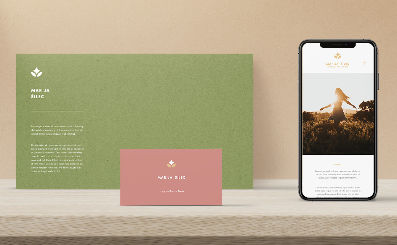 The given brand identity was designed for my sister who works with energy healing and holistic lifestyle support. Warmth, joy, calmness and intuition are strong traits of her personality, and at the same time - I dare say - the qualities that make clients trust her.